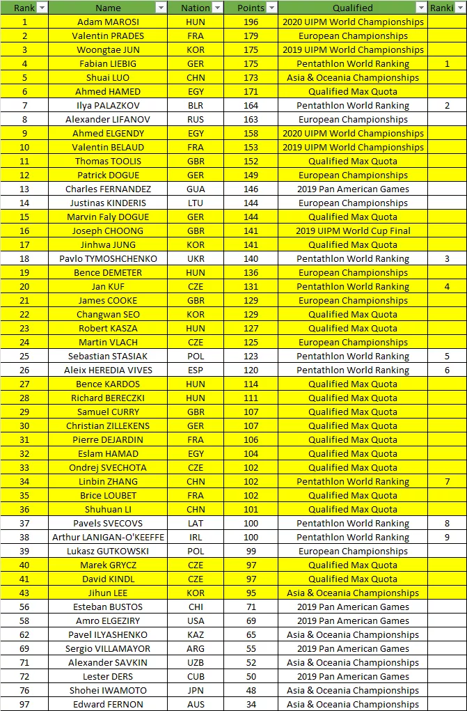 Lifanov already had a quota, so the third WCh quota will get added to the Olympic ranking quotas.